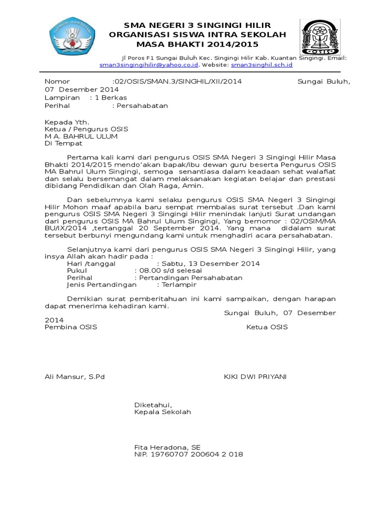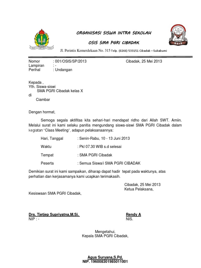 Contoh surat undangan resmi yang baik dan benar update. Contoh surat undangan rapat resmi organisasi contoh surat. Jalan tanjung no 17 kota blitar telp. Adapun kegiatannya erat berhubungan dengan orang tua murid atau acara akademis. Contoh surat undangan rapat osis. Surat undangan resmi untuk kepentingan / kegiatan yang bersifat resmi. Silahkan kunjungi postingan contoh surat undangan rapat osis sma untuk membaca artikel selengkapnya. Contoh surat undangan resmi menghadiri acara yang baik dan benarperusahaan osis pengajian instansi karang taruna pentas seni dll. Dalam pembuatannya, surat ini memiliki beberapa hal yang harus diperhatikan terkait struktur surat tersebut. 3 contoh surat resmi bahasa sunda karang taruna persiapan 17 agustus. Osis sma negeri 1 medan. Organisasi siswa intra sekolah (osis) smkn 2 blitar. Sebagai sebuah organisasi, kerapkali osis melaksanakan bermacam aktivitas yang bertujuan untuk mengundang osis dari sekolah lain untuk menghadiri kegiatan tersebut.